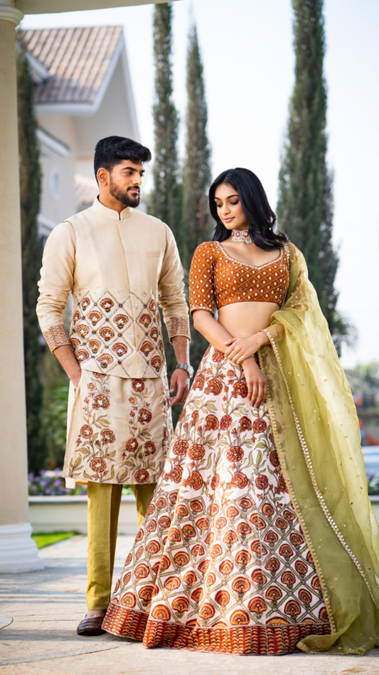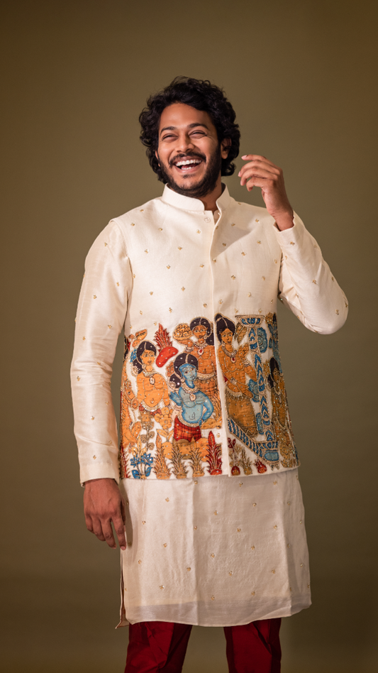 CREAM APPLIQUÉ BANDI KURTHA SET