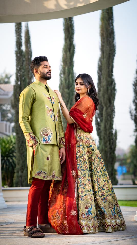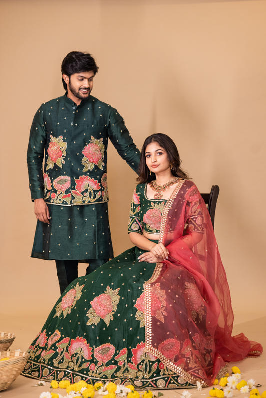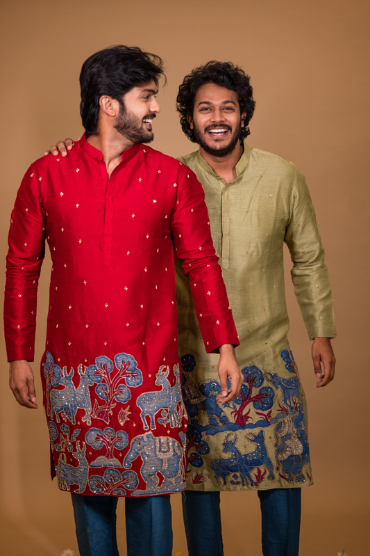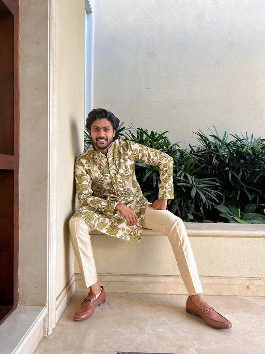 GREEN FLORAL KURTHA SET WITH ELEPHANTS
