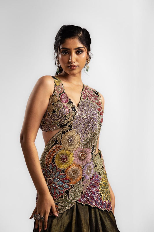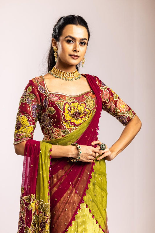 Gold hibiscus Lehenga set